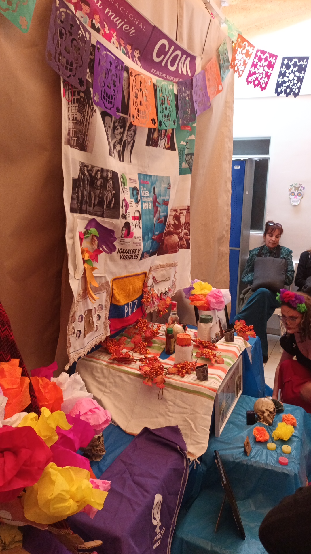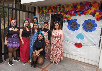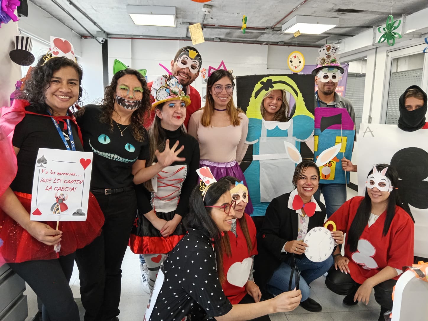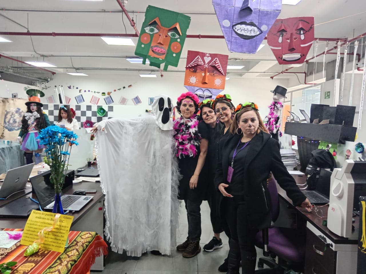 Ayer, nuestra secretaria Diana Rodríguez Franco, visitó la sede central disfrazada de fantasma para vivir la experiencia que nos tenían preparada las direcciones y acompañó al equipo de jurados que evaluó el trabajo en equipo, la innovación y el uso de materiales reciclados en las decoraciones. En días previos, visitamos las CIOM, en donde nuestras compañeras, además de decorar y disfrazarse, organizaron aquelarres y jornadas reflexivas con las mujeres que toman los servicios.