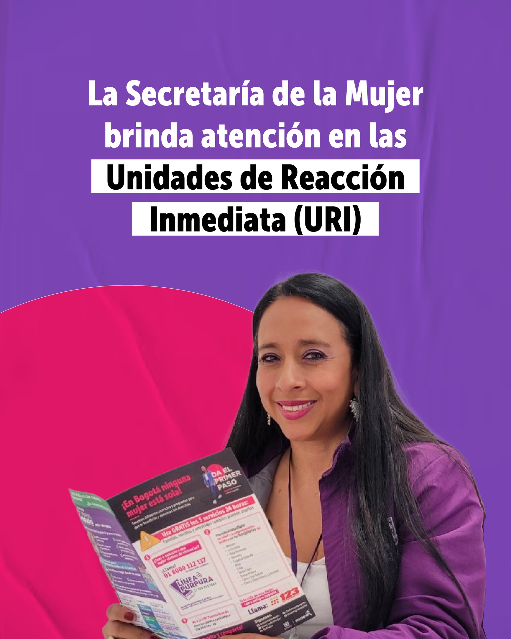¡No están solas! La Secretaría Distrital de la Mujer está en las Unidades de Reacción Inmediata de Ciudad Bolívar, Puente Aranda, Engativá y Kennedy para acompañarlas, asesorarlas y orientarlas. Fortalecimos nuestros servicios para llegar a donde más nos necesitan".
