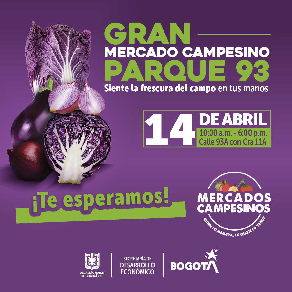 Este domingo 14 de abril, agéndate y participa en el Gran Mercado Campesino en el Parque de la 93.