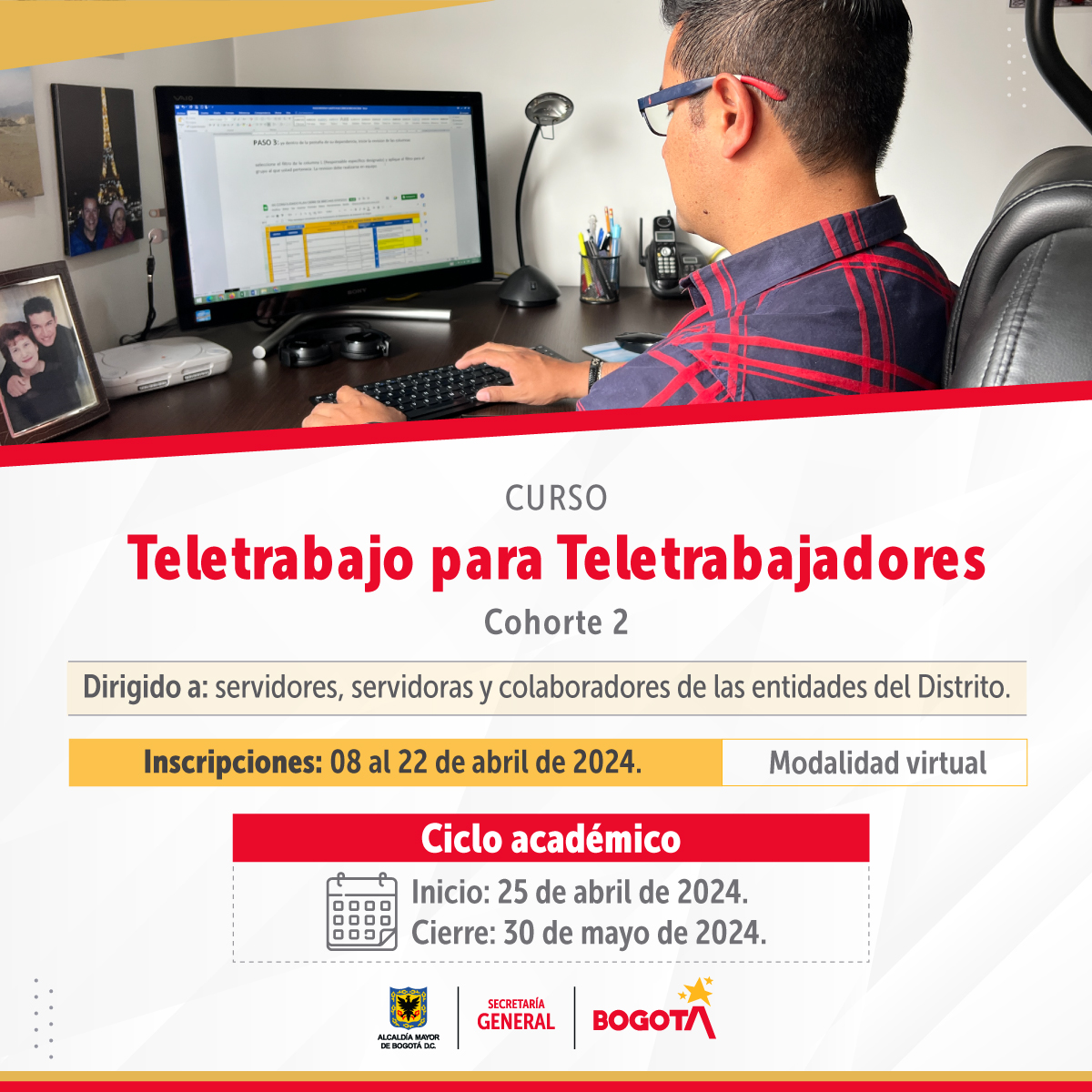 Ya están abiertas las inscripciones para el curso 'Teletrabajo para teletrabajador@s' ofrecido por la Secretaría General de la Alcaldía de Bogotá.