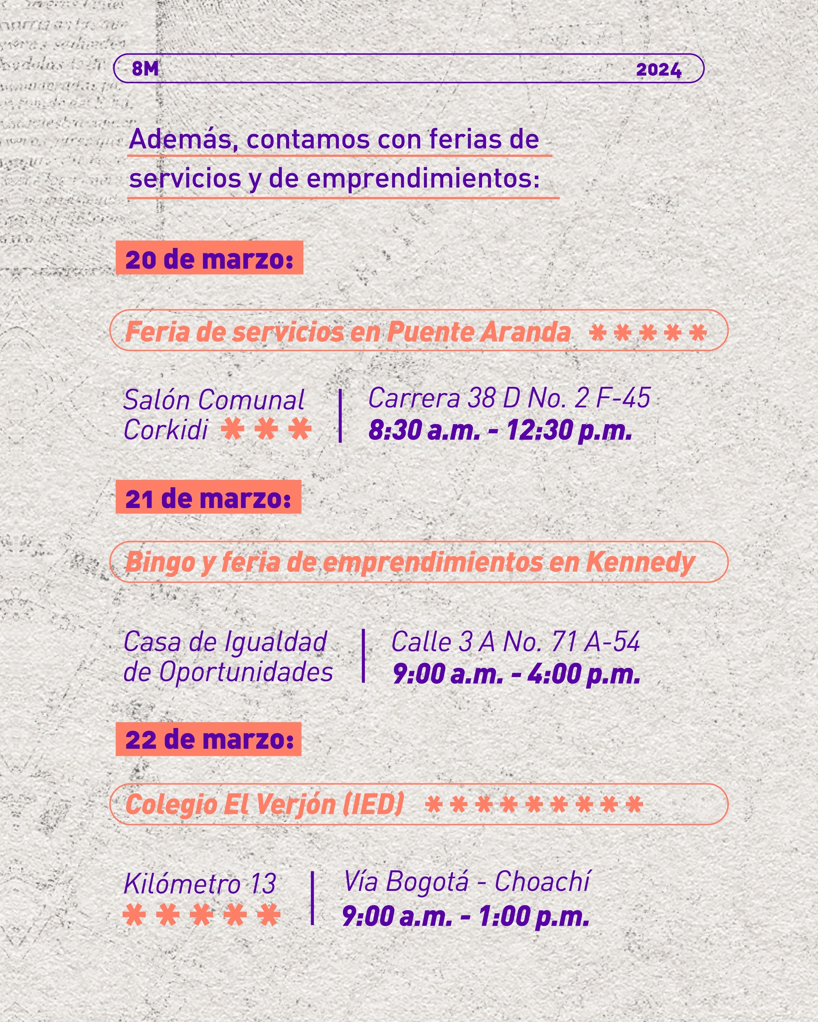 ¡La conmemoración del #8M continúa! Agéndate con la programación local en toda Bogotá