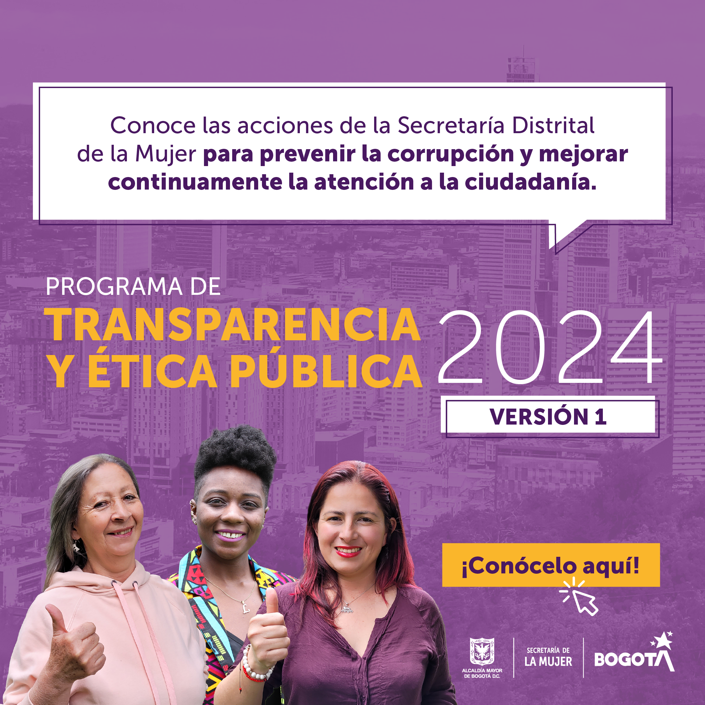 Consulta ya el Programa de Transparencia y Ética Pública -PTEP-2024, herramienta que nos permite recoger y fortalecer las medidas y capacidades institucionales que actualmente desarrolla la Secretaría Distrital de la Mujer.