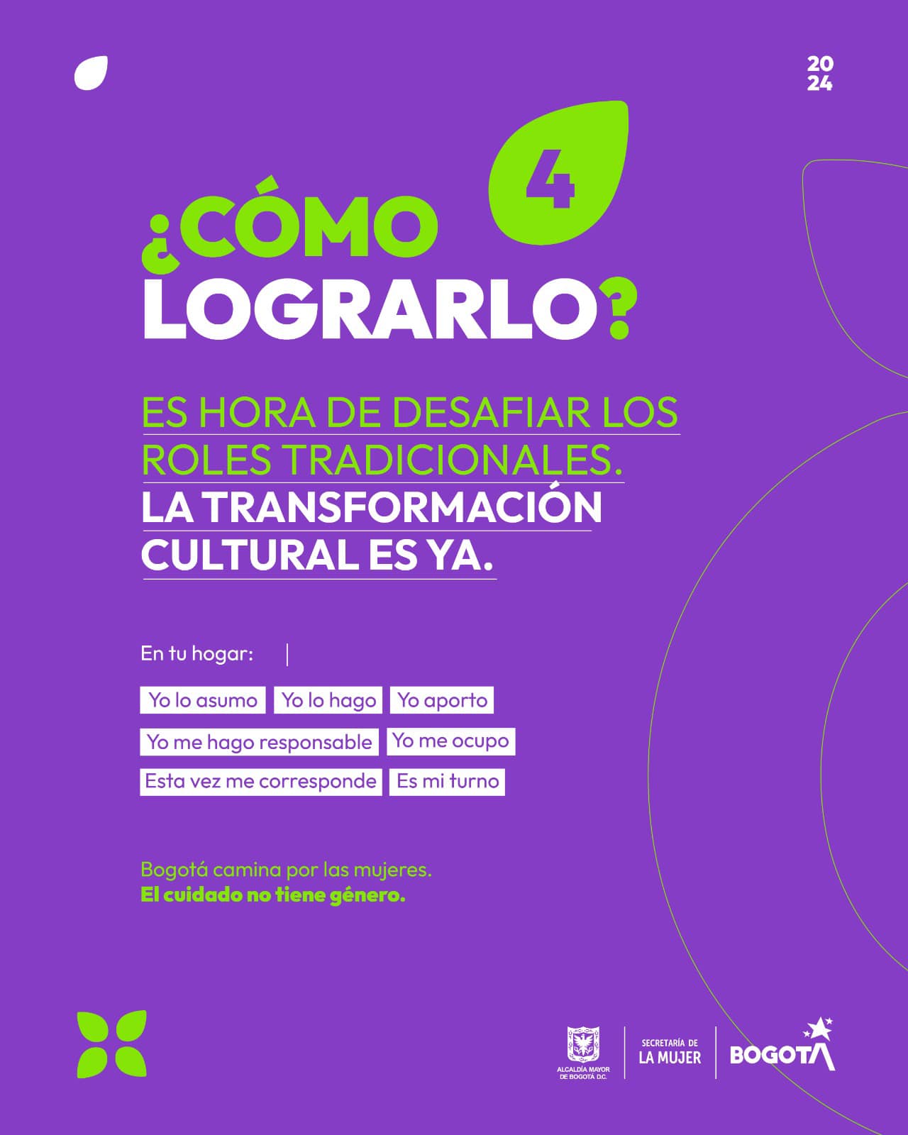 Reconocer, redistribuir y reducir son las 'R' que inspira nuestro Sistema Distrital de Cuidado y el reto que tenemos de desafiar los roles tradicionales conla transformación cultural.