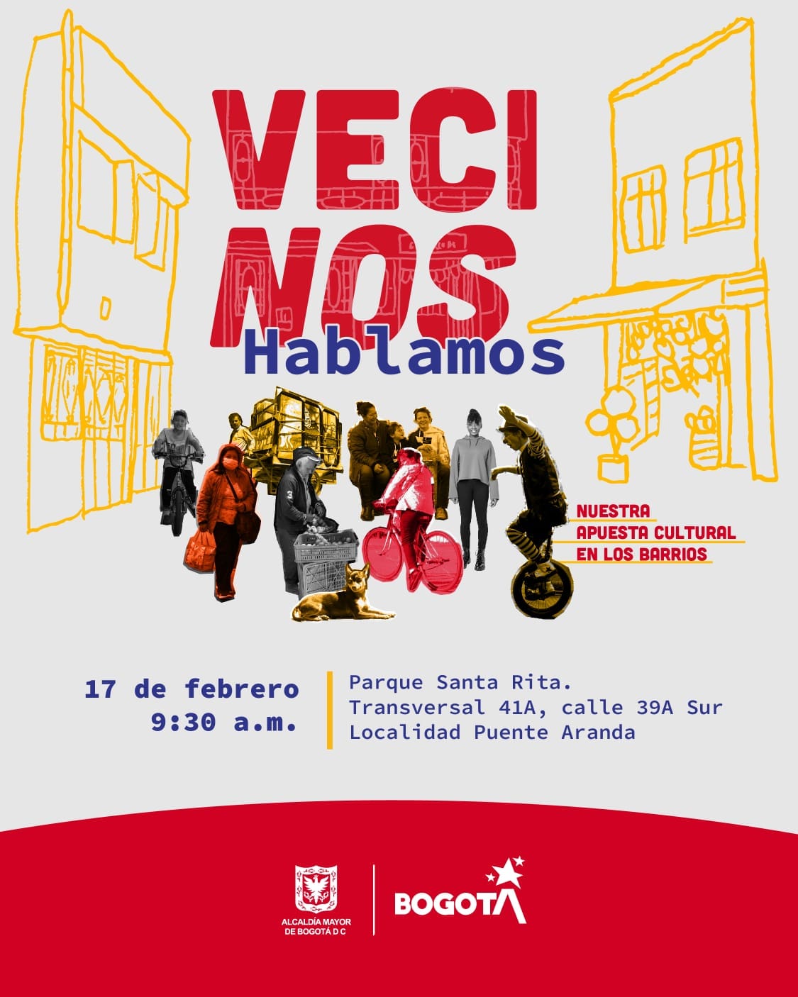 #VeciNosHablamos en el Parque Santa Rita este sábado 17 de febrero junto a una gran programación artística y cultural, para construir juntos el Plan Distrital de Desarrollo de nuestra ciudad. ¡Entrada libre!