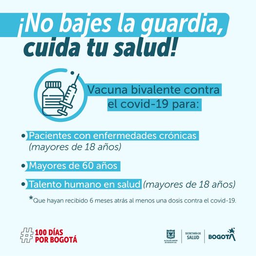 Es importante que personas mayores de 60 años, personas con comorbilidades y talento humano en salud, asistan a recibir su refuerzo con vacunas bivalentes disponibles contra covid-19.