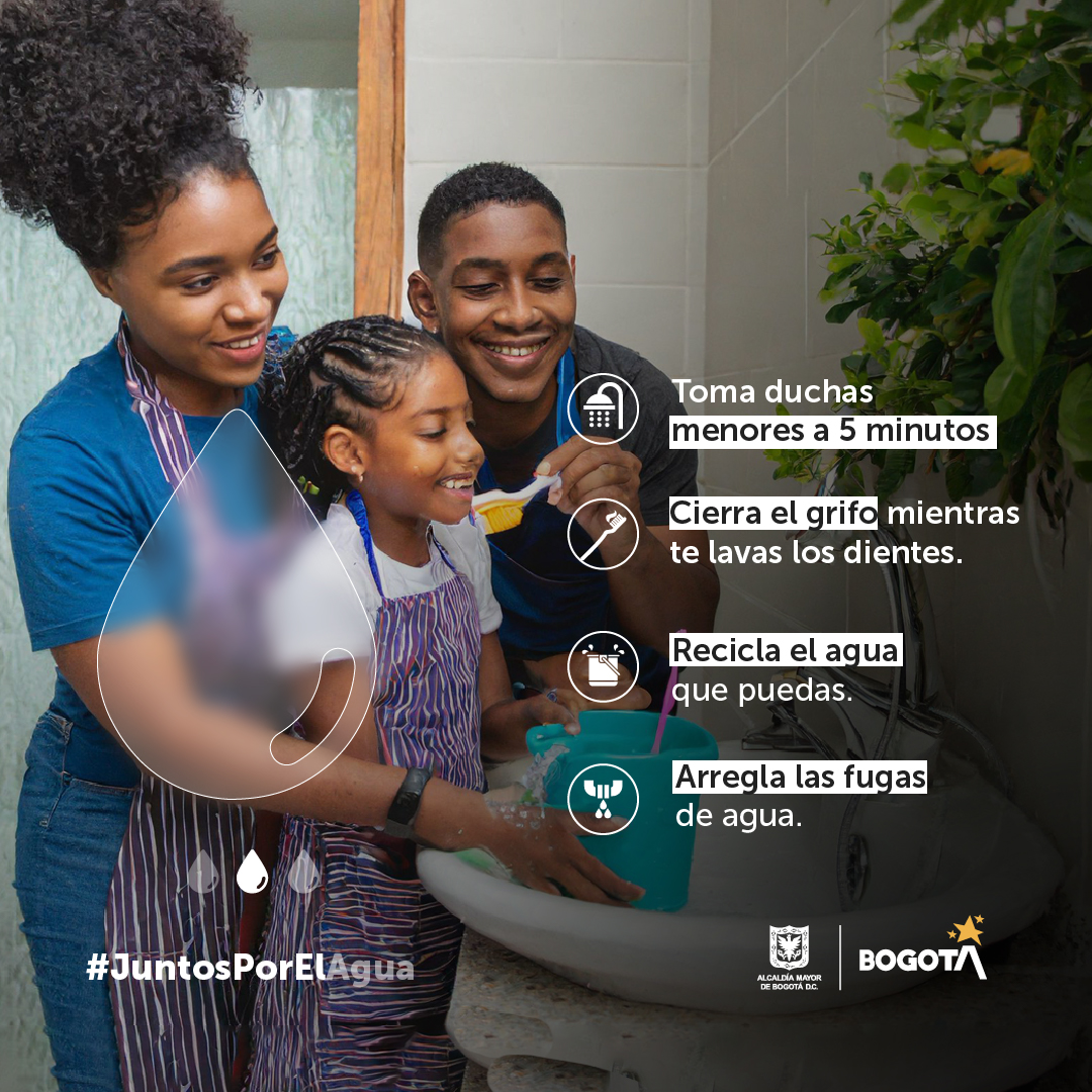 #JuntasPorElAgua 💙 con pequeños cambios en nuestra rutina diaria lograremos grandes impactos en la conservación de este recurso que hoy nos invita a ser más conscientes de su uso en Bogotá.