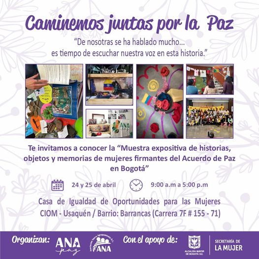 Participa en esta iniciativa de la organización Ana Paz con el apoyo de la Secretaría de la Mujer, con la que buscamos propiciar espacios de encuentro y diálogo con lideresas y mujeres diversas en los territorios, en un intercambio de experiencias y saberes que contribuyan a la construcción de la paz territorial.