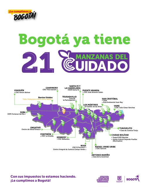 Dejamos 21 Manzanas del Cuidado en operación, pero no paramos ahí. La Administración de la primera mujer alcaldesa, deja 5 Manzanas listas para entregar en 2024. ¡Este es nuestro legado, una Bogotá que trabaja para cuidar a las que nos cuidan y cerrar las brechas de género!
