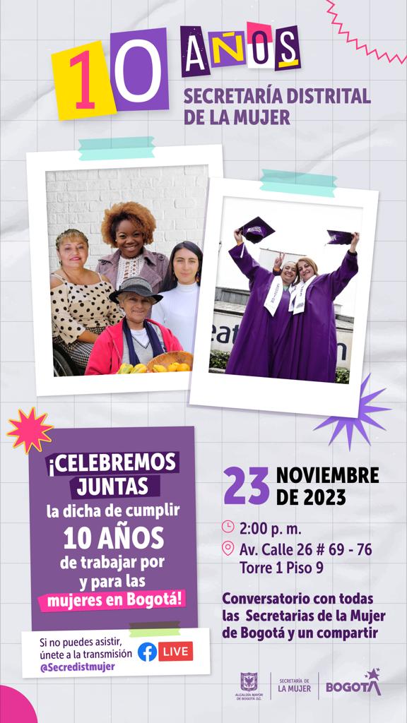 Este jueves 23 de noviembre celebraremos el décimo aniversario de nuestra entidad. Diez años en los que hemos trabajado sin descanso para proteger, garantizar y materializar los derechos humanos de las mujeres que habitan Bogotá en sus diferencias y diversidad.