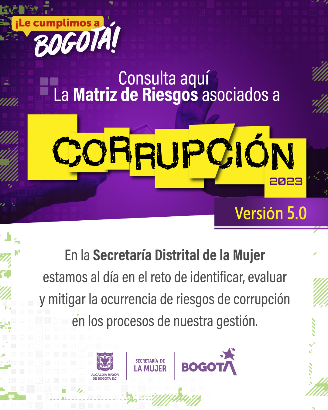 En la Secretaría Distrital de la Mujer estamos al día en el reto de identificar, evaluar y mitigar la ocurrencia de riesgos de corrupción en los procesos de nuestra gestión.