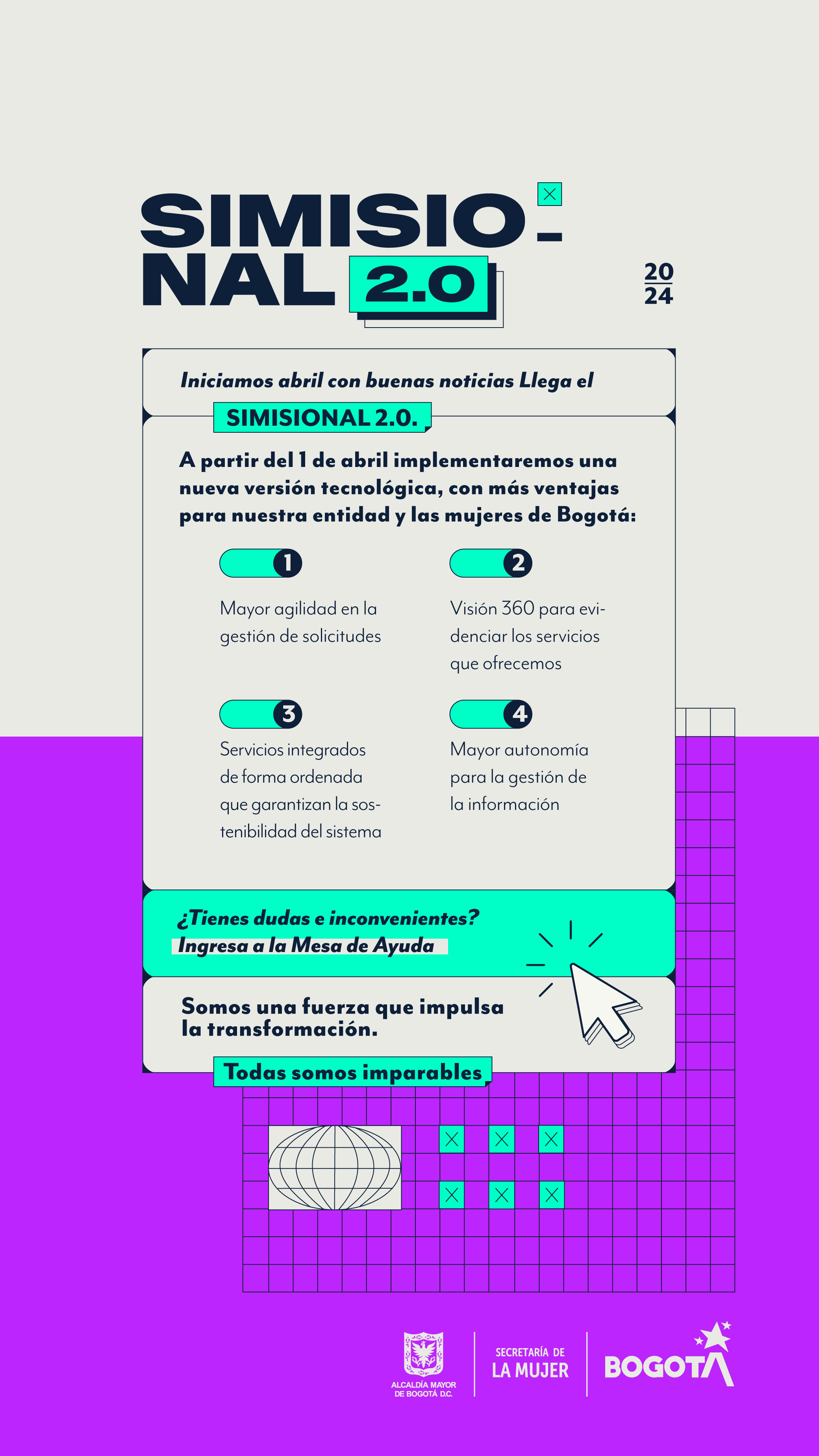 A partir del 1 de abril implementamos una nueva versión tecnológica con más ventajas para nuestra entidad y las mujeres de Bogotá.