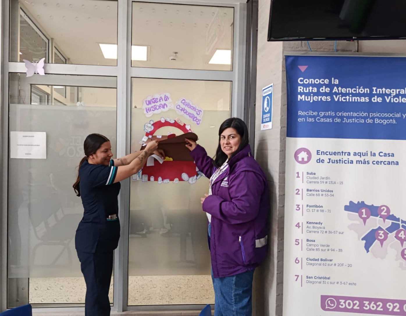 En las Casas de Justicia con Ruta Integral y en el Centro de Atención de la Fiscalía (CAF) de Paloquemao, las dinamizadoras se tomaron estos espacios con la actividad simbólica “Viaje a la historia, derechos conquistados”, una experiencia que invitó a reflexionar sobre la lucha histórica de las mujeres por el trabajo digno y en condiciones de igualdad.