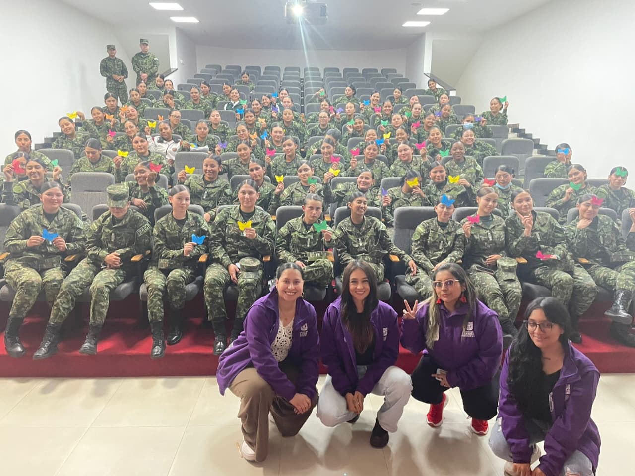 Esta apuesta, liderada por las dinamizadoras, se complementó con una jornada de sensibilización dirigida a 90 mujeres militares del Batallón de Apoyo y Servicio para el Combate No. 19, donde conocieron sus derechos, la importancia de promover entornos laborales libres de discriminación y los servicios de la Secretaría Distrital de la Mujer.