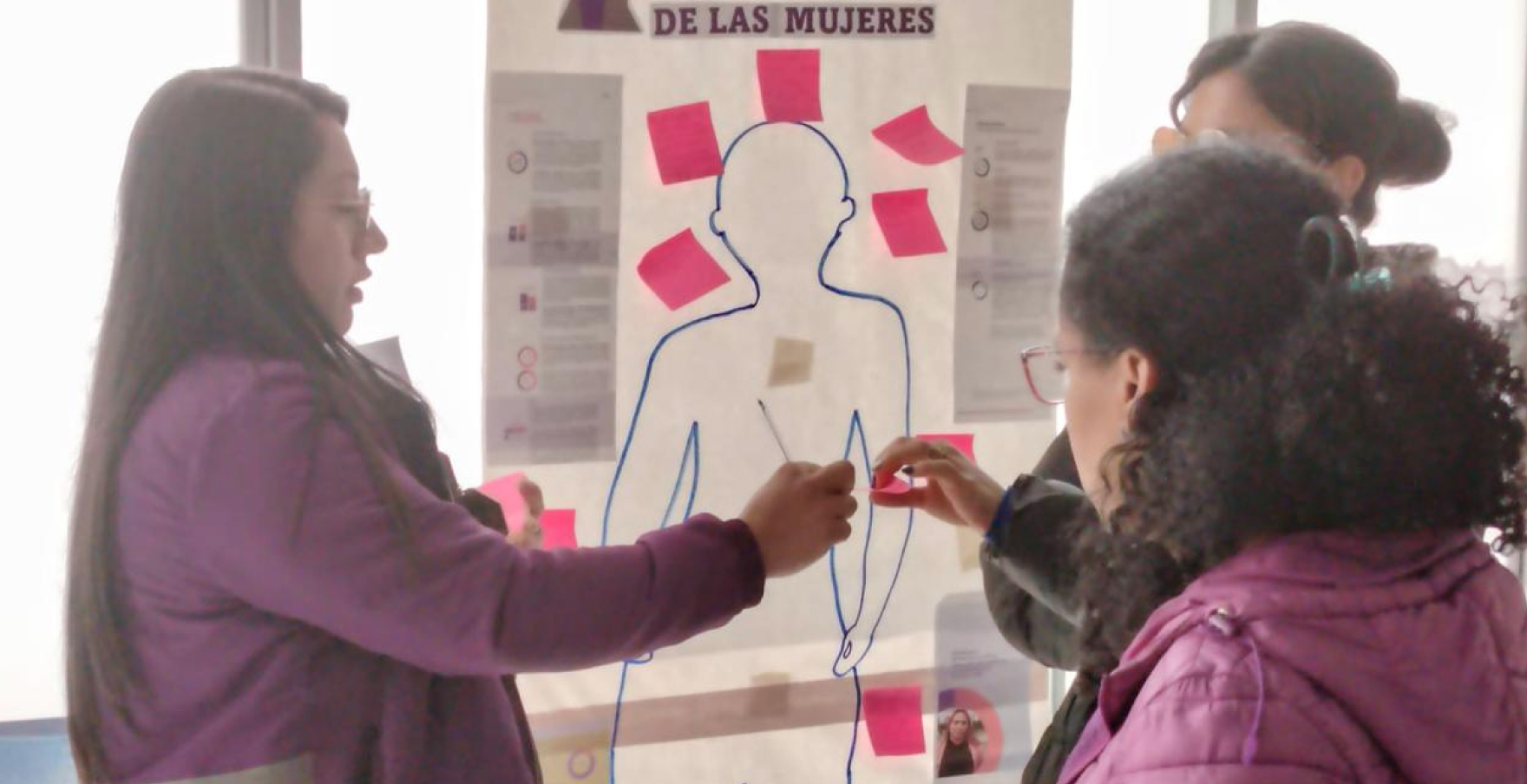 Durante la actividad, se desarrolló un ejercicio de cartografía del cuerpo, en el que las participantes identificaron las acciones que realizan para su autocuidado, reconociendo su cuerpo como territorio de derechos.
